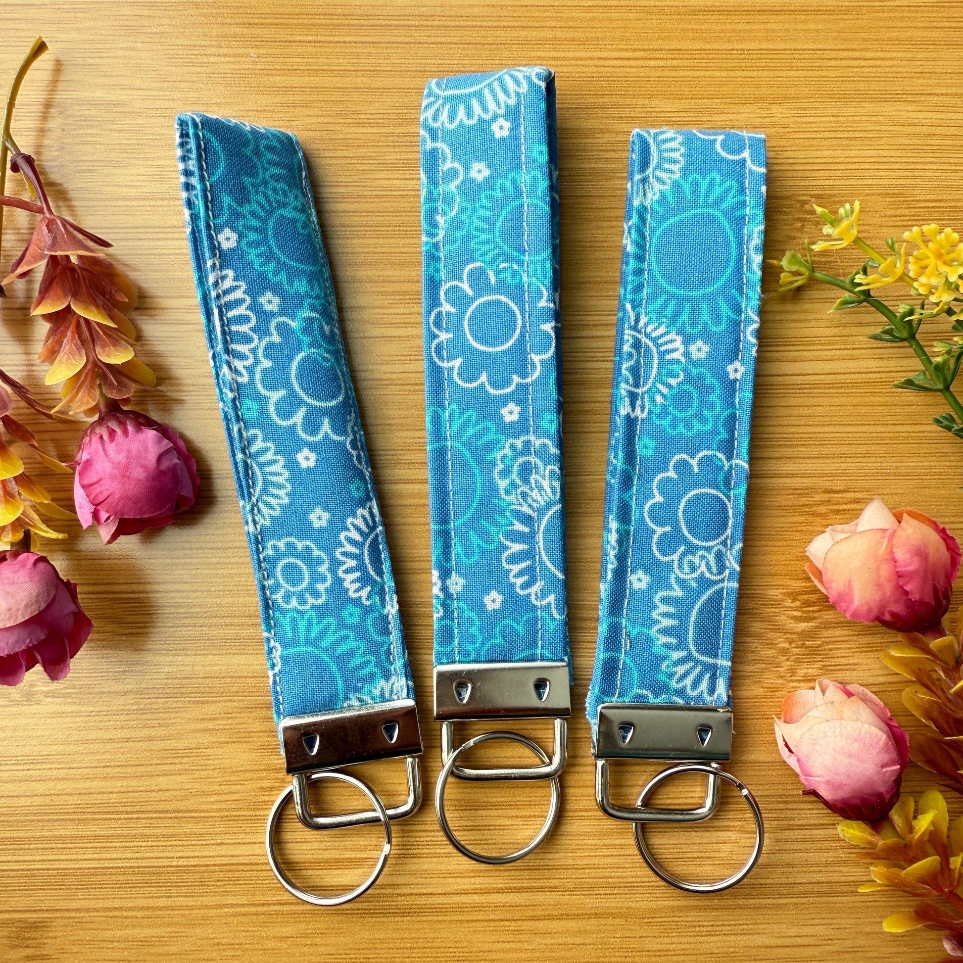 Fabric Key Fob (KF11) - Daisy Blue